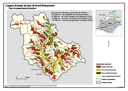 D’après l’inventaire forestier national, la production brute des bois sur pied au niveau du Pays (correspondant à ce qui pousse sur pied) est d’environ 160 000 m3 par an (soit 100 000 m3/an pour les forêts communales, 10 000 m3/an pour les forêts domaniales et 50 000 m3/an pour les forêts privées).