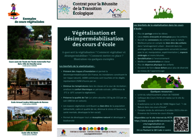 N'hésitez pas à consulter le guide ICI sur la végétalisation des cours d'école afin de connaître les différents aspects techniques, financiers, l'ingénierie à mobiliser, les avantages à renaturer, les effets apportés sur le bien-être des écoliers...