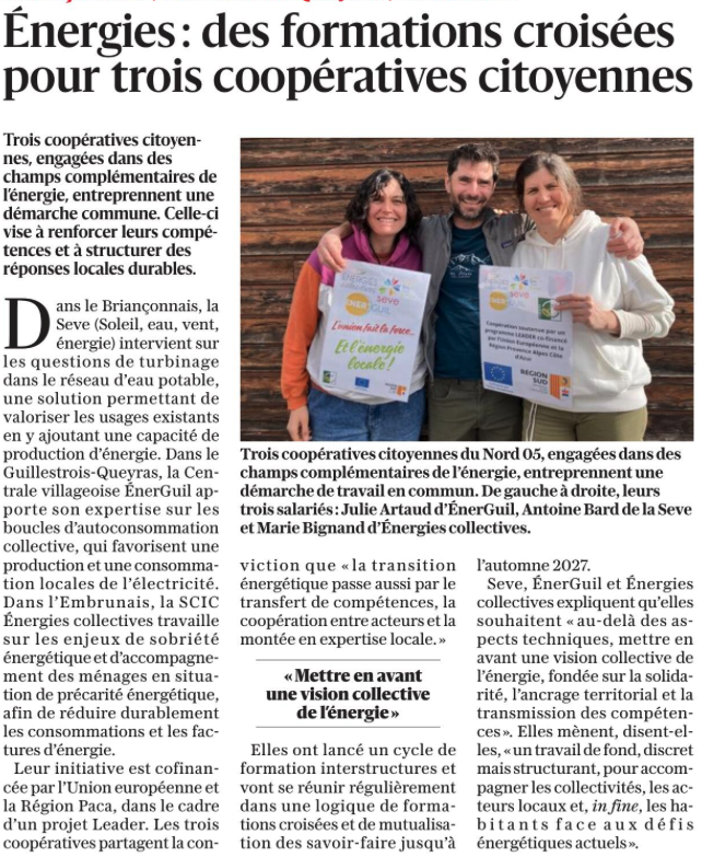 Energie : des formations croisées pour 3 coopératives citoyennes (LEADER) - Le Dauphiné 26/02/2026