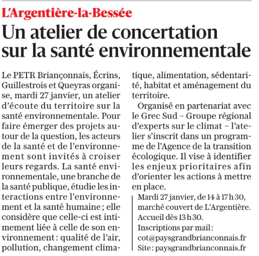 Un atelier sur la santé environnementale - Le Dauphiné 24/01/2026