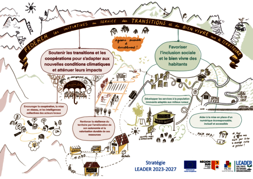 Issue de la concertation autour de la candidature au programme LEADER 2023 2027 - à laquelle vous pouvez avoir accès ICI - cette stratégie affirme la nécessité d’approfondir les dynamiques de transitions territoriales pour faire face aux crises climatique, énergétique, économique et sociale dans le but de rester un territoire accueillant qui garantit les conditions du bien vivre de ses habitants.